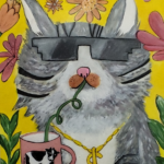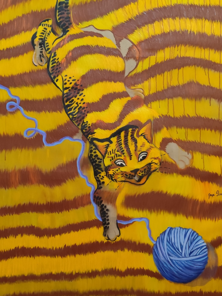 No holl e corredores, pinturas e gravuras de artistas nacionalmente famosos que compartilhas espaços com aqueles iniciantes, que em algum momento de suas carreiras, retrataram em suas obras, sua admiração pelos gatos.